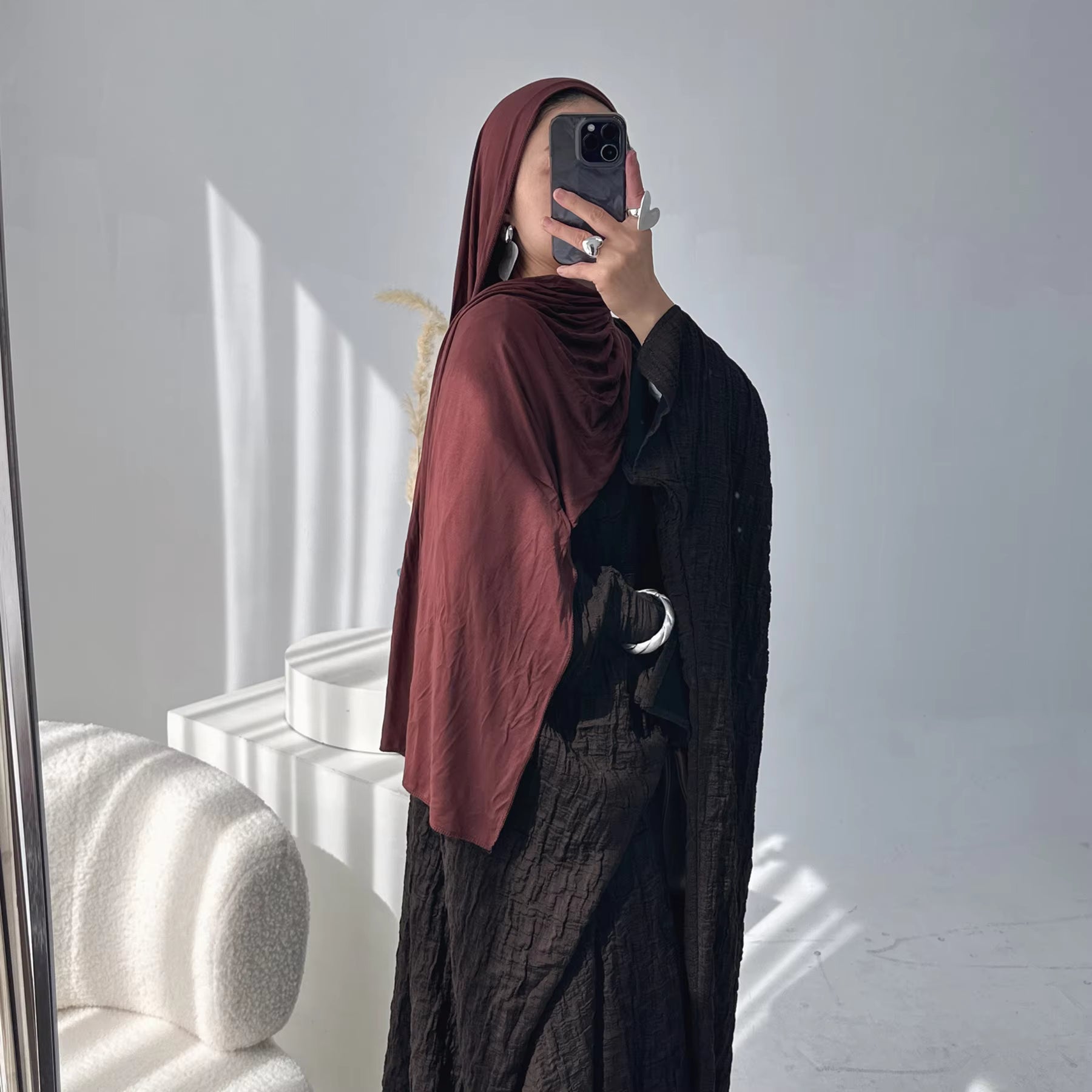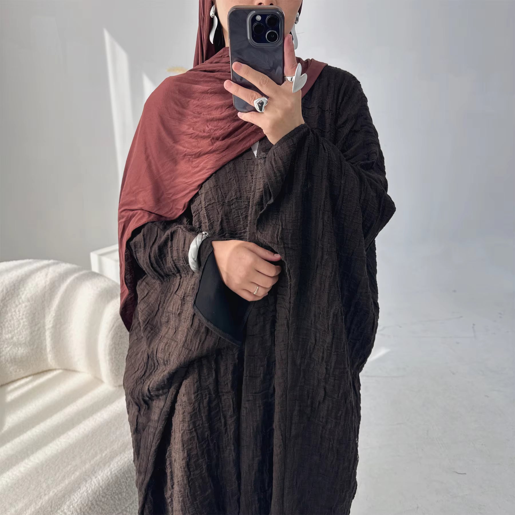 Our Brown Textured Open Front Abaya is designed for modern Muslim women who value elegance, comfort, and modest fashion. The soft textured fabric drapes beautifully, making it perfect for daily wear, gatherings, Ramadan, and special occasions.