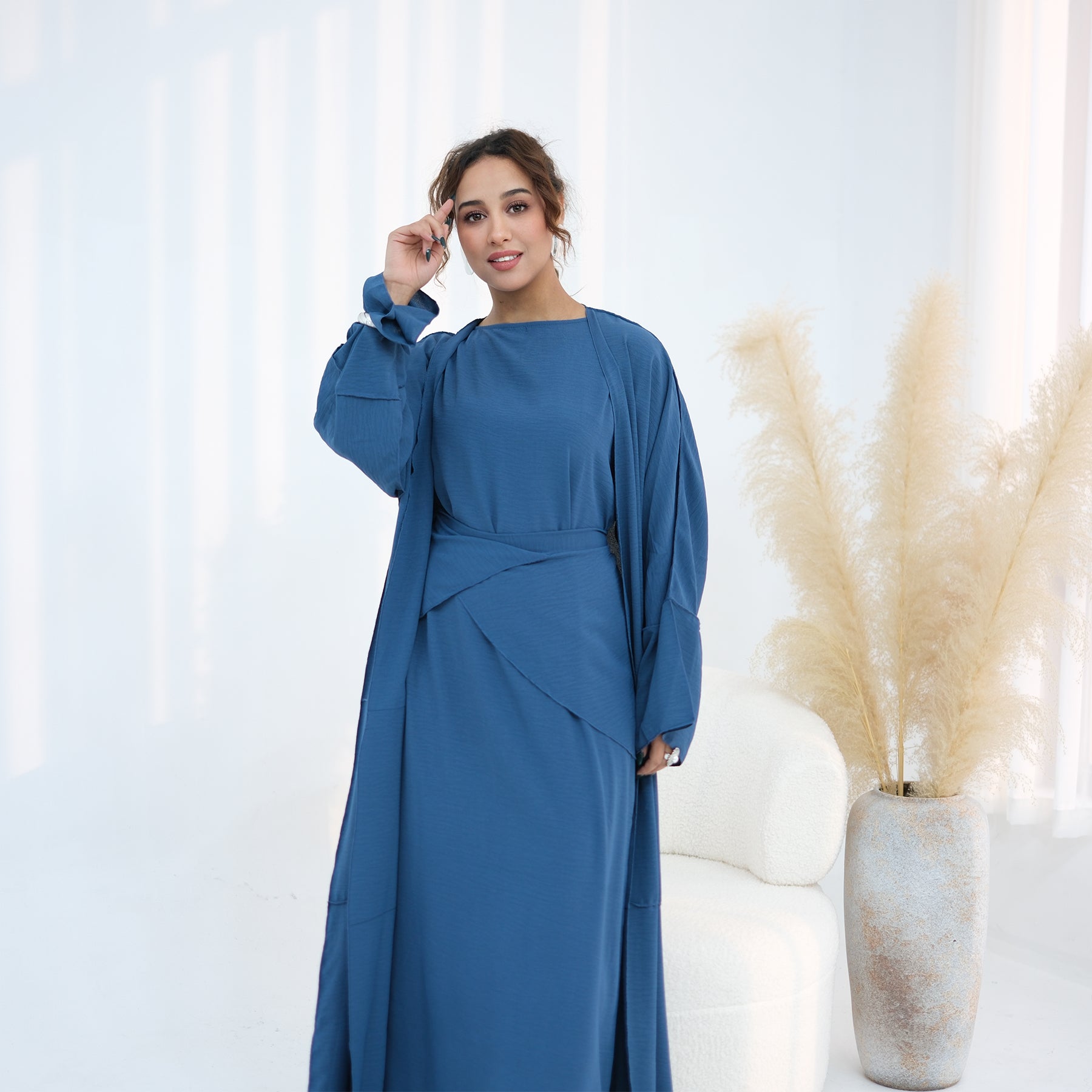 Nura 3pcs Modest Kimono Abaya Set β Breathable & Elegant