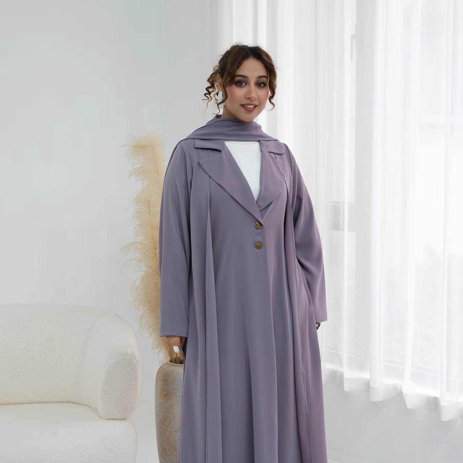 - 2-Piece Set: Front open abaya coat + matching chiffon hijab