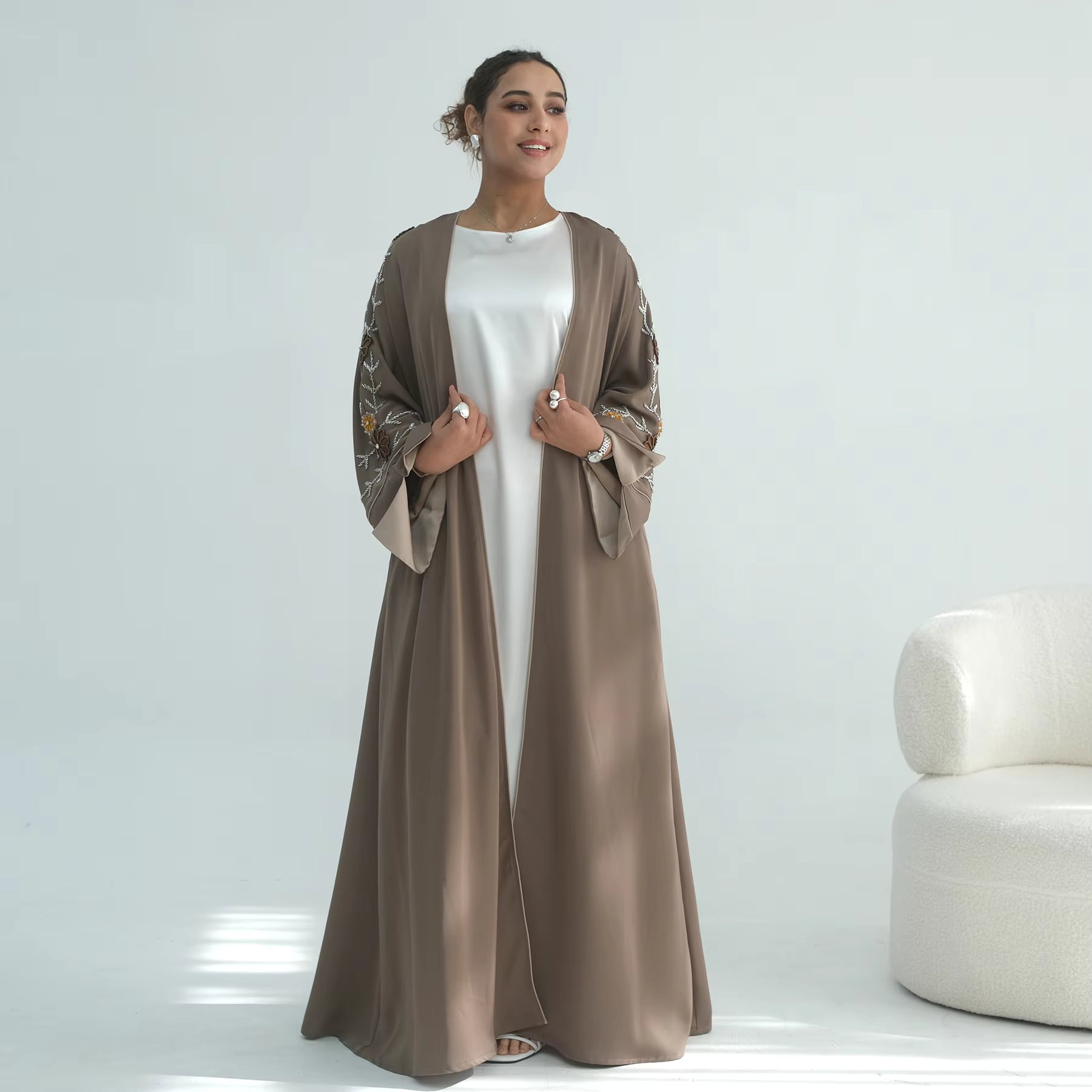 - Open front Abaya for modest layering